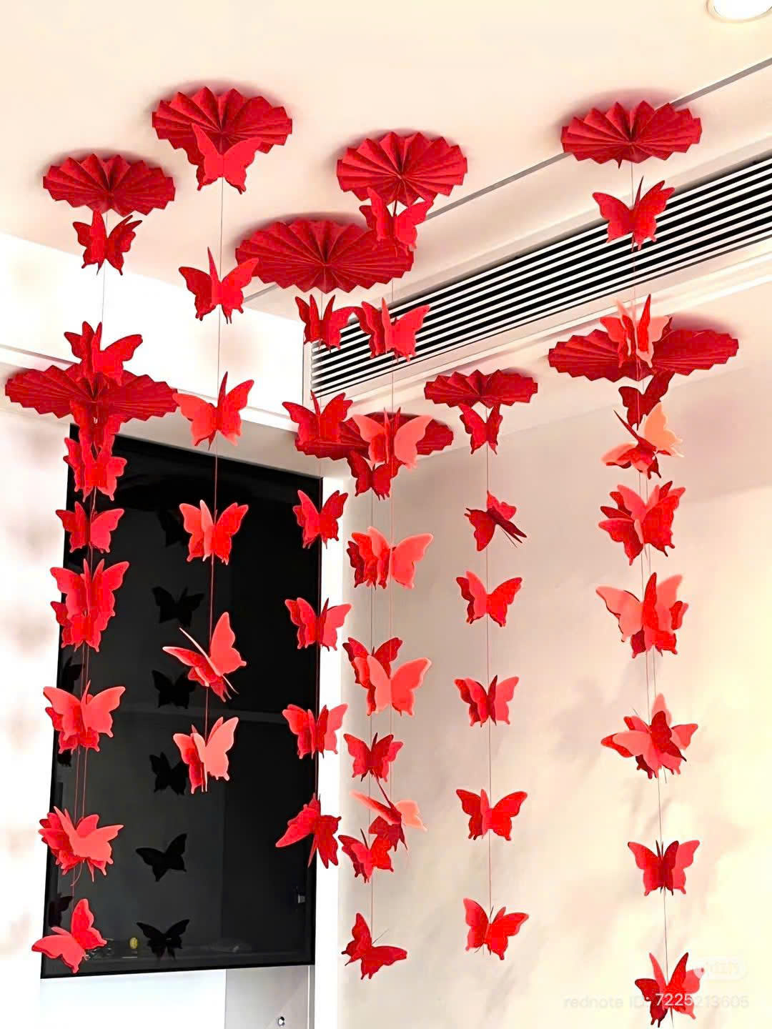 🦋 Bướm đỏ trang trí Tết được làm từ giấy dày dặn, in 2 mặt sắc nét, màu đỏ tươi mang ý nghĩa may mắn – tài lộc – hỷ sự.