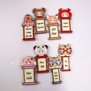 Thiết kế: dạng blind bag (túi mù), mở ra có icon kèm lời chúc học tập.